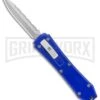 This is another awesome stainless steel stiletto OTF inspired by the classic Italian stilettos. It’s a massive 13″ when open and the acrylic handle is a very cool-looking silver with dark horn inlays. The knife fires automatically with a thumb slide deployment and retracting mechanisms.