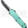 The Mini Marvel offers amazing automatic action considering its compact size. It has a dual action sliding value that smoothly opens and closes the knife with ease. The stainless steel blade comes in a black finish. It has a red aluminum handle with a lanyard hole in the end for attaching to a keychain, backpack, or lanyard. The Mini Marvel OTF offers a compact design and a budget friendly price.