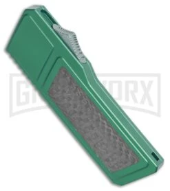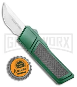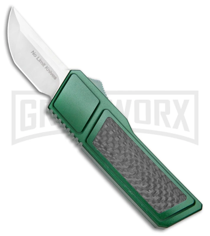 This No Limit Akuma has a green aluminum and carbon fiber handle and satin finished tanto blade.